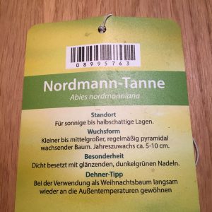 Die am häufigsten verwendete Tanne ist die Nordmanntanne (Abies nordmanniana). Sie wächst langsamer als Fichten und ist deshalb auch um einiges teurer. Sie hat glänzende tiefgrüne Nadeln und nadelt, auch als abgeholzte Version, sehr wenig. Das macht sie für mich zum Favoriten. Auch die Tanne hat meist einen gleichmäßigen und dichten Wuchs und ist somit perfekt zum schmücken geeignet. Die Nadeln sind zudem etwas weniger spitz, so dass das Schmücken etwas mehr Spaß macht 🙂 Auch hier handelt es sich um eine bei uns heimische Pflanze, die unseren Witterungsbedingungen gut angepasst ist. Allerdings ist die Tanne nur bedingt für die Kultivierung im Topf geeignet – warum? Sie ist ein Pfahlwurzler, d.h. sie hat eine lange, tief gehende Wurzel, was sich im Topf mit  zunehmender Größe schwierig gestaltet. Deshalb ist ihr Wachstum im Topf begrenzt – vielleicht kann ich meine in einigen Jahren in den Garten meiner Eltern umpflanzen.