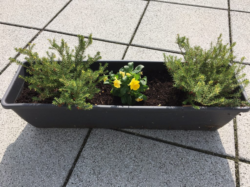 Ich pflanze beide, Hornveilchen und Winterheide, gerne zusammen in einen Pflanzkasten. Sie ergänzen sich optisch perfekt durch ihre Unterschiedlichkeit, und haben dabei beide ähnliche Anforderungen an den Standort: sonnig bis halbschattig und möglichst durchlässiger Boden. Vor allem die Durchlässigkeit des Bodens und dass die Pflanzen nicht im kalten bzw. gefrorenen Wasser stehen, kann bei nicht überdacht stehenden Kästen allerdings eine Herausforderung sein. Am besten Blähton als unterste Schicht in die Balkonkästen gegeben und die Kästen etwas erhöht auf alte Übertöpfe stellen. Bei starken Regenfällen ist es sicher auch sinnvoll ab und an Wasser auszuschütten, um Staunässe zu vermeiden.
